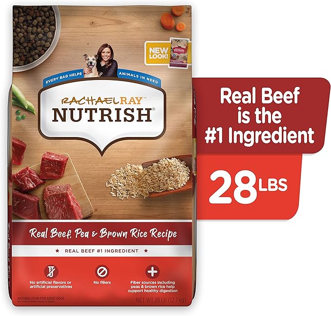 Rachael Ray Nutrish Premium Natural Dry Dog Food with Added Vitamins, Minerals & Taurine, Real Beef, Pea, & Brown Rice Recipe, 28 Pounds (Packaging May Vary)