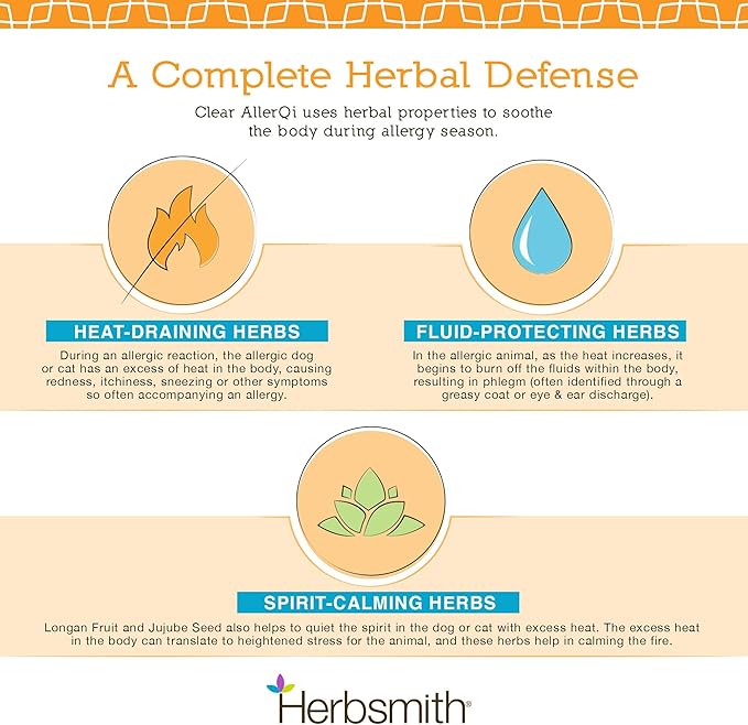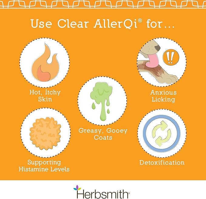 • SEASONAL ALLERGY SUPPORT FOR DOGS AND CATS – Itchy, irritated skin is a normal part of Spring and Summer for pets with seasonal allergies. For many pet parents, allergy season is extremely difficult – but it doesn’t have to be! Clear AllerQi provides pet allergy support by helping maintain healthy skin and normal histamine levels, all while supporting the body’s detoxification process.