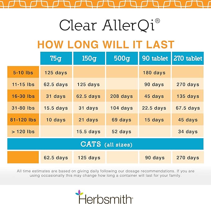 Herbsmith Clear AllerQi – Allergy Aid for Cats and Dogs – Pet Allergy Support – Anti Itch Pills for Dogs and Cats – 500g Powder