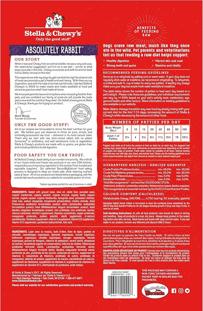 Stella & Chewy's Freeze Dried Raw Dinner Patties – Grain Free Dog Food, Protein Rich Absolutely Rabbit Recipe – 5.5 oz Bag