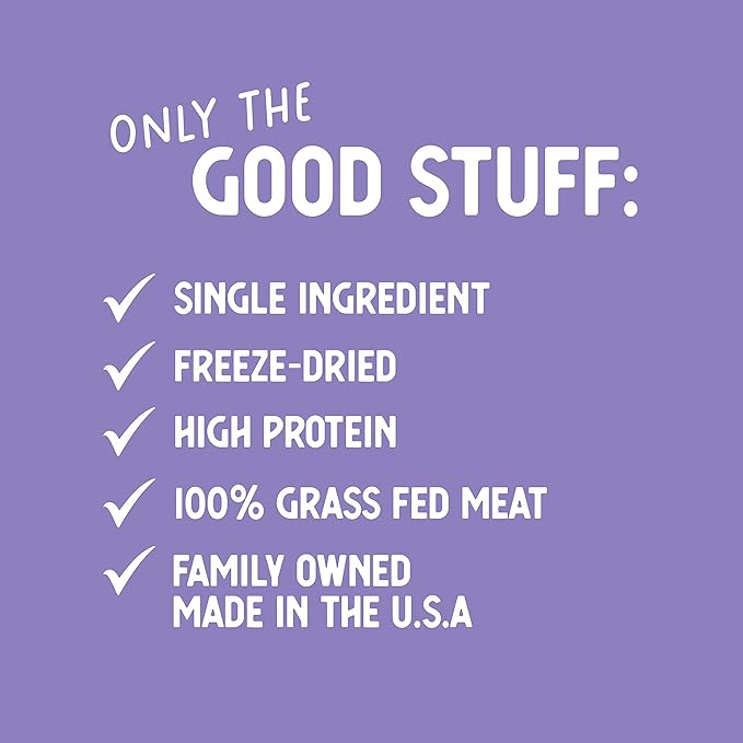 • DOG TREATS MADE HEALTHY: They're perfect training treats for your pup of all ages;Our freeze-dried treats are made from high-quality ingredients and contain no rendered animal fats, colors, dyes, added sugar, Ethoxyquin, or BHT;Great tasting meaty treats that show your dog you care.