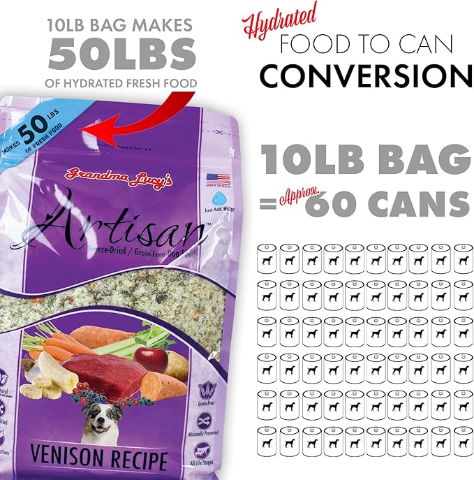 Grandma Lucy's Artisan Dog Food, Grain Free and Freeze-Dried - Artisan Venison, 3Lb Bag