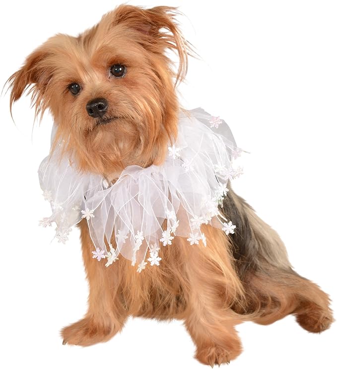 • Adjustable costume collar features white ribbons tipped with snowflake accessories