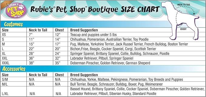 • IMPORTANT to review Rubie's Pet Size Chart and measure your dog, not all costumes will fit all pets