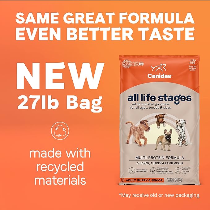 Canidae All Life Stages Premium Dry Dog Food for All Breeds, All Ages, Multi- Protein Chicken, Turkey, Lamb and Fish Meals Formula, 27 Pounds