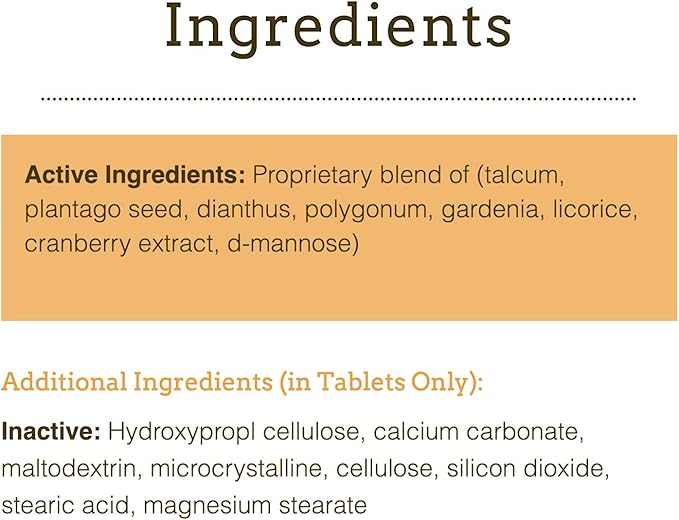 • PROMOTES A HEALTHY URINARY TRACT – Dog and cat bladder infections are often caused by E. coli or other harmful bacteria attaching to the walls of the bladder. Bladder Care promotes normal, healthy urinary tract function and protects the walls of the bladder from harmful bacteria. Without a place to attach, the bacteria can be carried out in urine elimination, or detoxed by the kidneys. No harm, no foul.