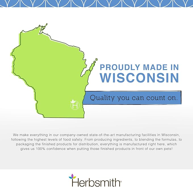 • Made in the USA – this supplement was created by holistic veterinarian Dr. Chris Besant, who owns and operates Herb smith's two facilities in Wisconsin. It’s quality you can trust from a veterinarian with over 30 years of experience.
