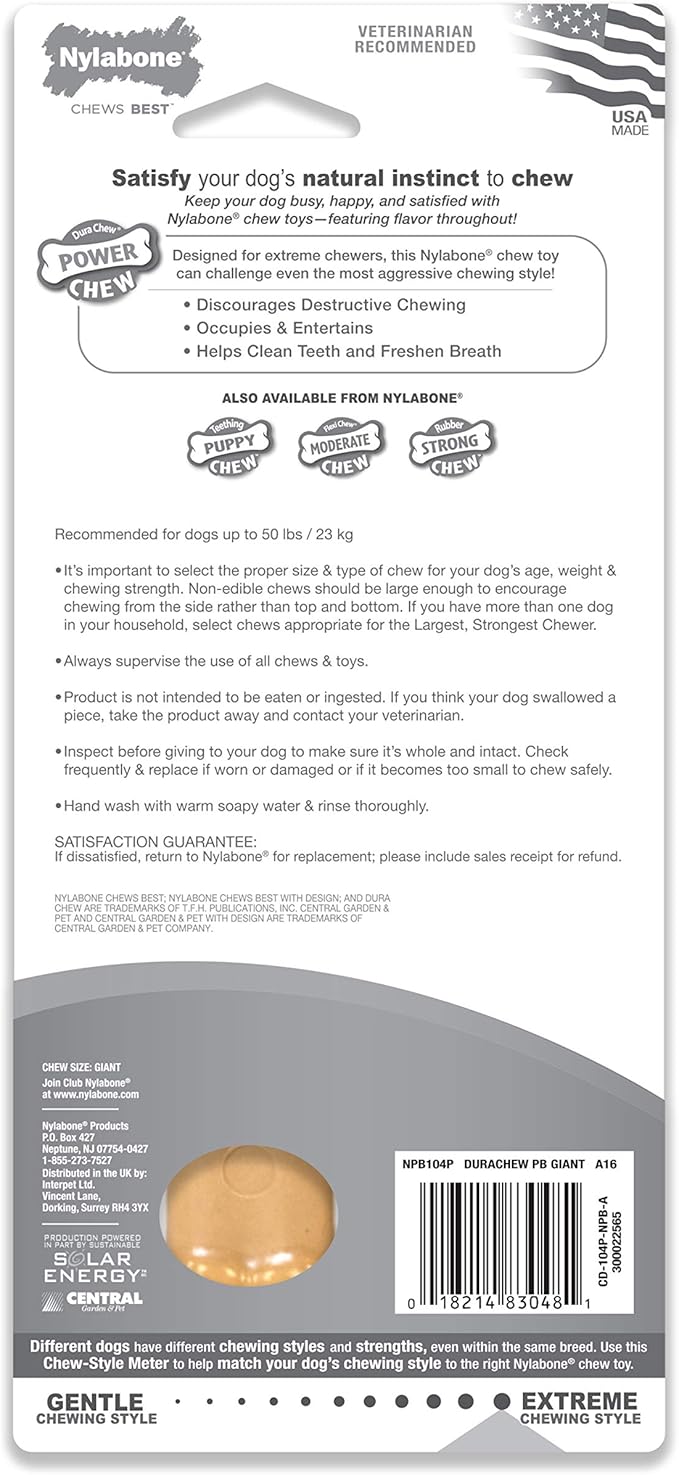 Nylabone Power Chew Classic Bone Chew Toy for Dogs, Durable Dog Toys for Aggressive Chewers, Peanut Butter Flavor, Large/Giant - Up to 50 lbs. (1 Count)