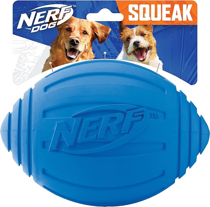 • NERF-TOUGH: Nerf-quality materials make our Ridged Squeaker Football perfect for fetch and for teaching your dog new tricks
