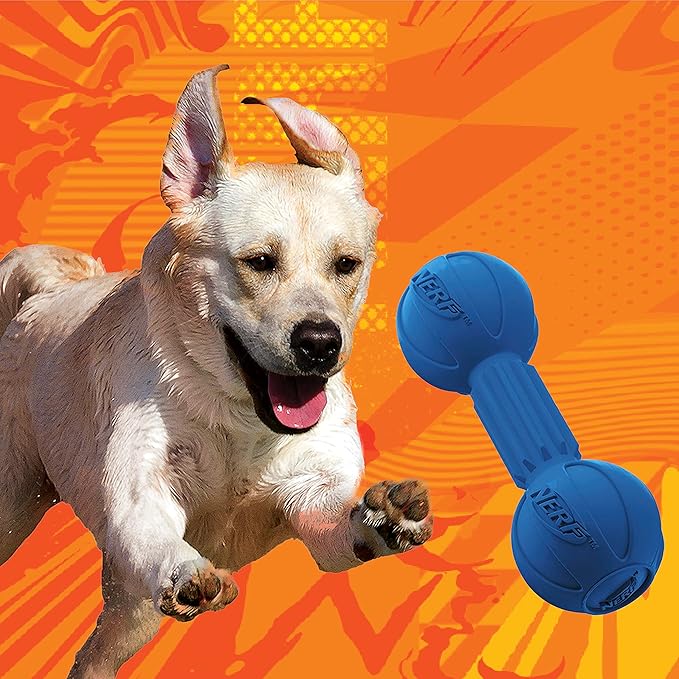 • NERF-TOUGH: Nerf-quality materials make our Chew Barbell toy perfect for fetch and for teaching your dog new tricks