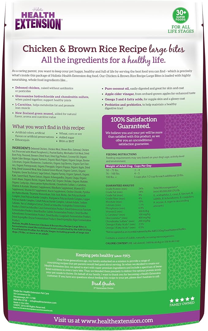 Health Extension Large Bites Dry Dog Food, Natural Food for Adult Large Breed Dogs with added Vitamins & Mineral, Chicken & Brown Rice Recipe (30 lb / 13.6 kg)