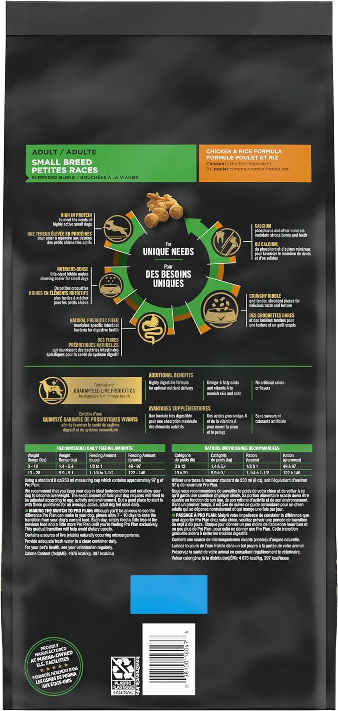 Purina Pro Plan Small Breed Dog Food With Probiotics for Dogs, Shredded Blend Chicken & Rice Formula - 6 lb. Bag