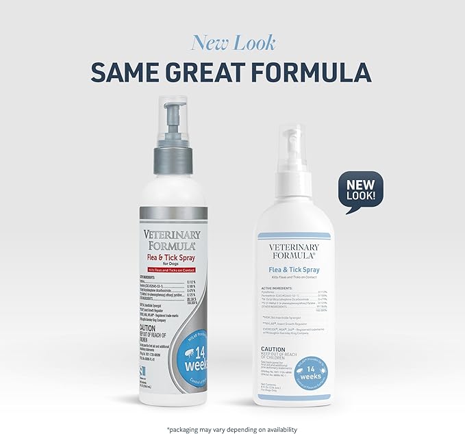 • LASTING PROTECTION – After killing fleas and ticks, the Veterinary Formula Flea and Tick Spray provides up to 14 weeks of protection. This easy-to-use spray can be re-applied as required but no more often than once every two weeks