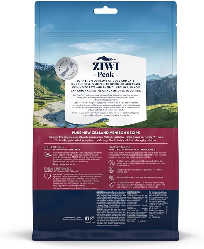 ZIWI Peak Air-Dried Dog Food – All Natural, High Protein, Grain Free & Limited Ingredient with Superfoods (Venison, 1.0 lb)