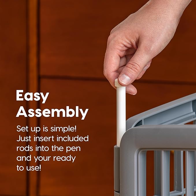 • EASY ASSEMBLY - Built with convenience in mind, the pet playpen can be put together easily thanks to the full length connecting rods. It comes with 3 non-door panels and 1 panel with a door, each panel featuring rubber feet to protect flooring and keep the pet pen in place.