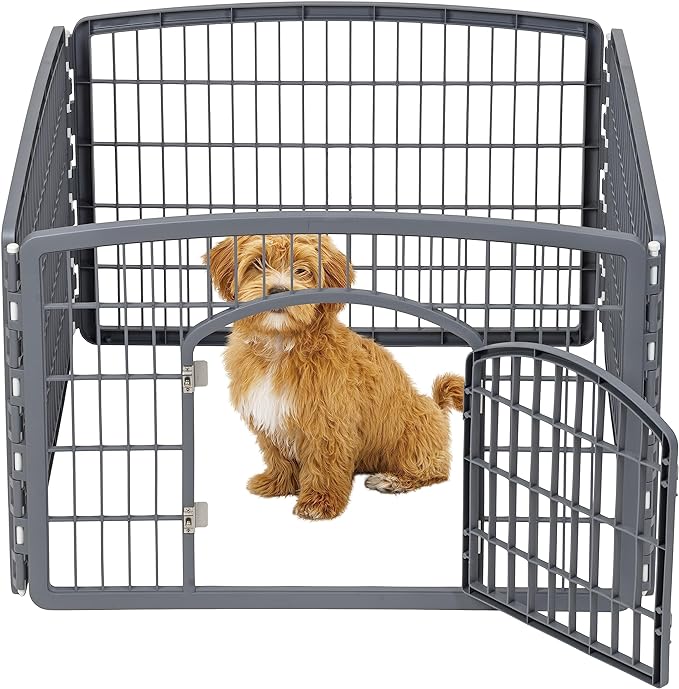 IRIS USA Dog Playpen, 4-Panel 24" Pet Playpen with Door, Puppy Playpen, Indoor/Outdoor Dog Pen, 35 x 35 x 24, Foldable, Customizable, Dark Gray