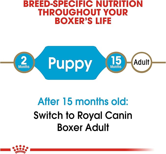• FORMULATED FOR PUREBRED BOXERS: Royal Canin Boxer Puppy Dry Dog Food is designed to meet the nutritional needs of purebred Boxers 8 weeks to 15 months old