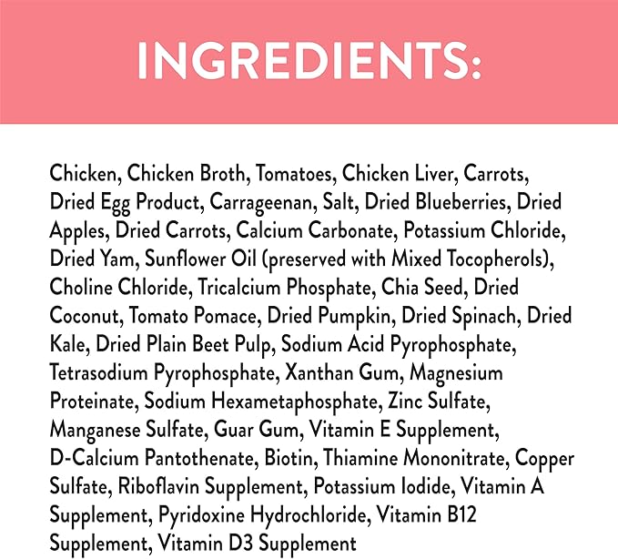 • Real chicken is the #1 ingredient in this delicious soft paté, finished off with chicken, and a vibrant medley of tomatoes and carrots