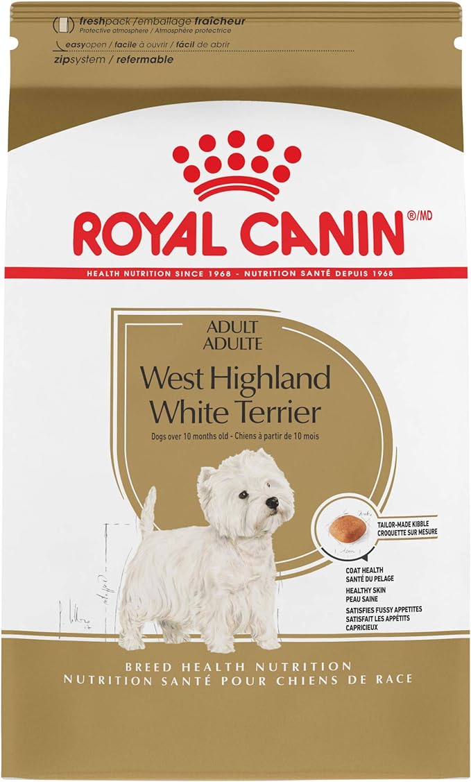 • Royal Canin West Highland White Terrier Adult dry dog food is designed to meet the nutritional needs of purebred West Highland White Terriers 10 months and older