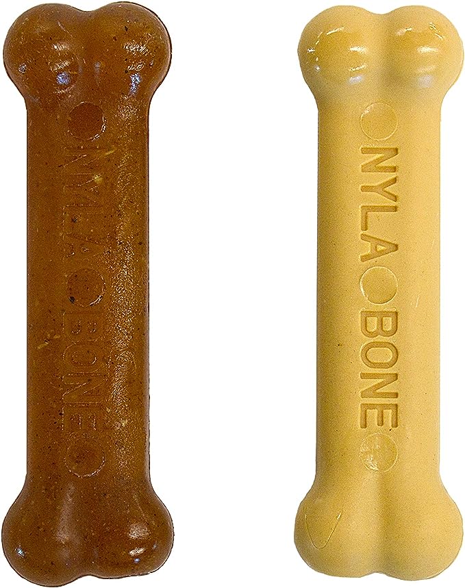 Nylabone Classic Puppy Chew Toy Twin Pack - Puppy Chew Toys for Teething - Puppy Supplies - Chicken & Peanut Butter Flavor, X-Small/Petite, 2 Count (Pack of 1)