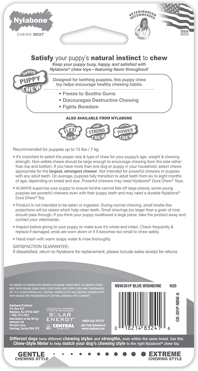 Nylabone Puppy Wishbone Chew Toy - Puppy Chew Toy for Teething - Puppy Supplies - Blue, Chicken Flavor, X-Small/Petite (1 Count)