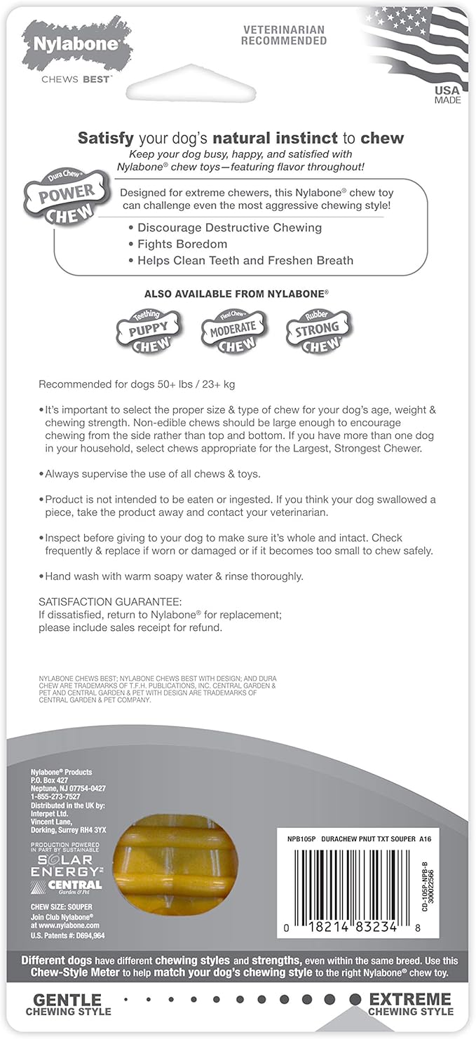 Nylabone Power Chew Textured Femur Bone Chew Toy for Dog, Indestructible Dog Toys for Aggressive Chewers Large Breed, Peanut Butter Flavor, X-Large/Souper (1 Count)