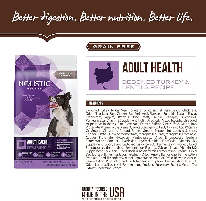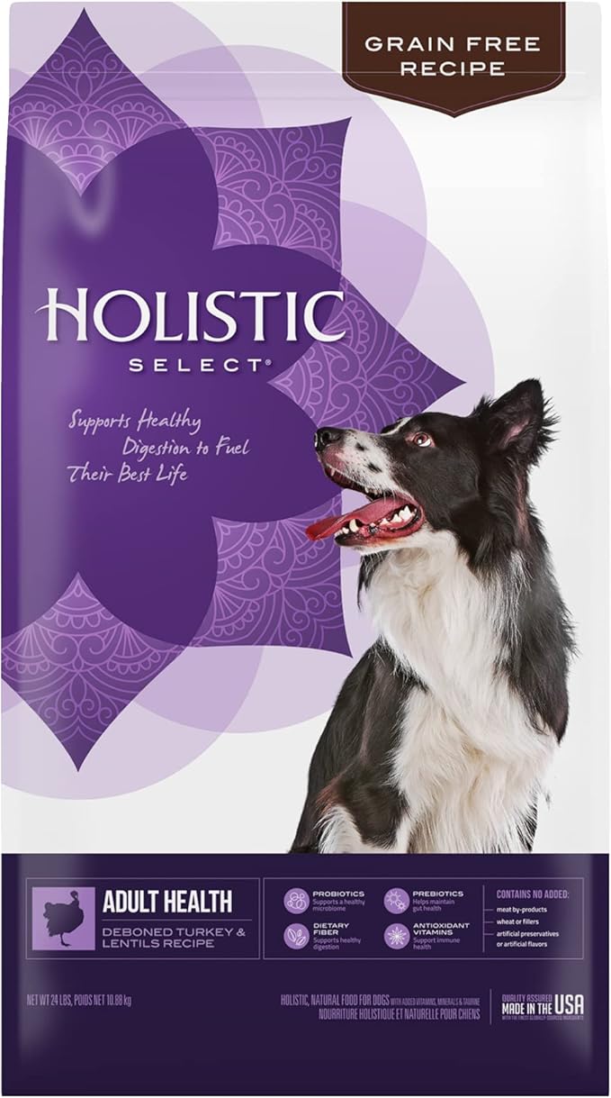 Holistic Select Natural Grain Free Dry Dog Food, Deboned Turkey & Lentils Recipe, 24-Pound Bag