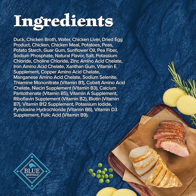 • WHOLESOME INGREDIENTS: BLUE wet dog food contains NO chicken (or poultry) by-product meals, NO corn, wheat (a common thickening agent used by many other brands) or soy, and NO artificial flavors or preservatives