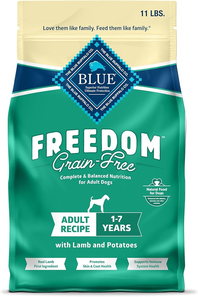 Blue Buffalo Freedom Grain-Free Dry Dog Food, Complete & Balanced Nutrition for Adult Dogs, Made in the USA With Natural Ingredients, Lamb & Potatoes, 11-lb. Bag