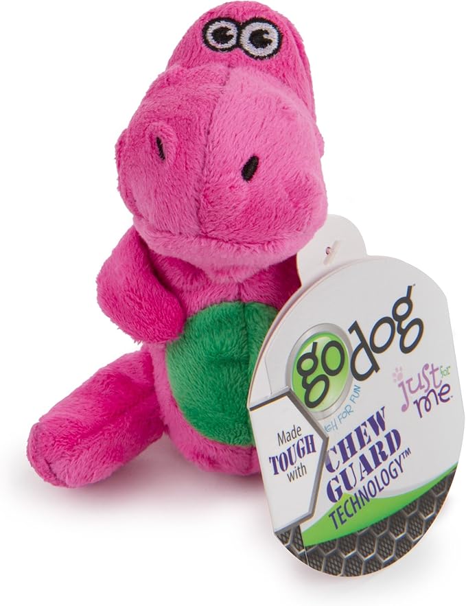 goDog Just For Me Dinos T-Rex Squeaky Plush Dog Toy, Chew Guard Technology - Pink, Mini