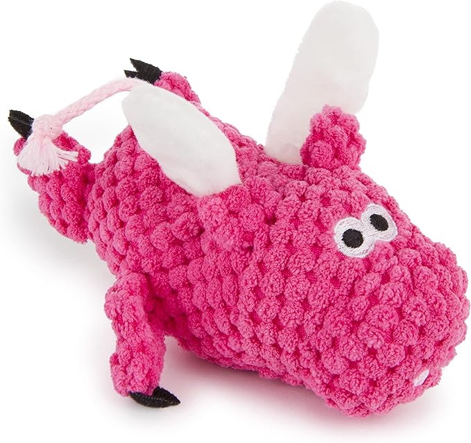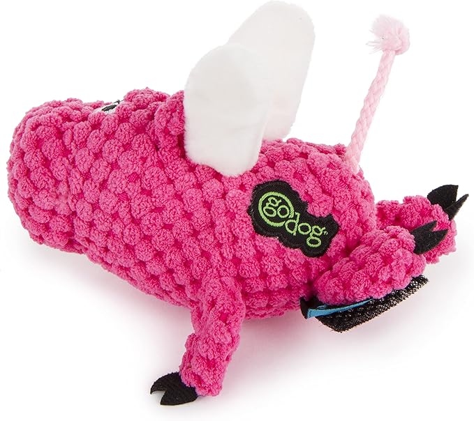 goDog Just for Me Flying Pig Checkers with Chew Guard Technology Tough Plush Dog Toy, Pink, Small