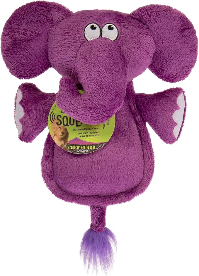 • SOFT & DURABLE PLUSH: Get that tail wagging with excitement for the Flattie Elephant Silent Squeaker dog toy. This cute and cuddly plush toy is perfect for play, with a built-in ultrasonic squeaker that only your dog can hear and no messy stuffing inside!