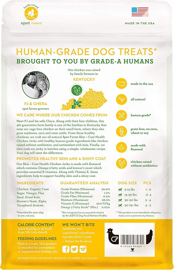 • U.S.-GROWN CHICKEN: Spot Farms treats are proudly made in the United States using regionally sourced ingredients including USDA-approved, antibiotic-free chicken raised on family farms in Kentucky.