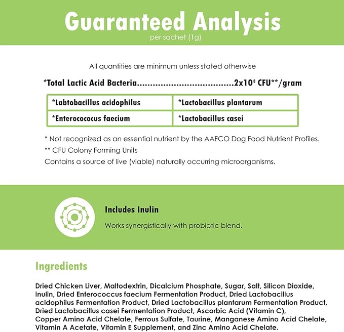 • Quality Assurance: Crafted with meticulous care and quality ingredients, Proflora Probiotic meets the highest standards for your dog's health and happiness. You can trust in its premium quality.