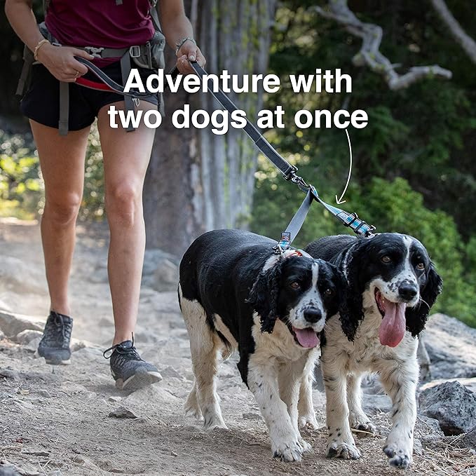 Kurgo Double Dog Leash Extender, Two Dog Lead, Dual Leashes for Dogs, Leash Coupler, Adjustable, Reflective, Tangle-Free, Coastal Blue