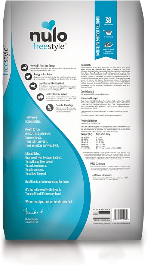 • PROMOTES HEALTHY COAT, LEAN MUSCLES - Along with our nutritious ingredients, Nulo features Omega-3 and Omega-6 fatty acids to nourish your dog's skin and help promote a beautiful, shiny coat