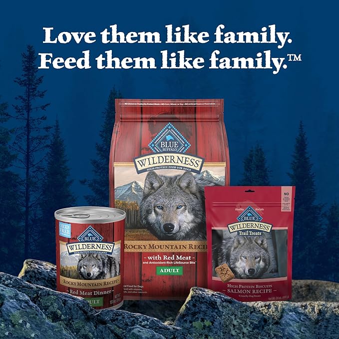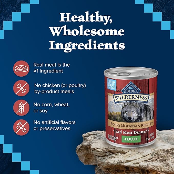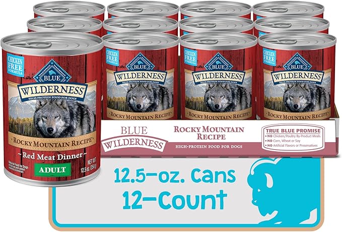 • Contains twelve (12) 12.5-oz cans of BLUE Wilderness Rocky Mountain Recipe High Protein Grain Free, Natural Adult Wet Dog Food, Red Meat