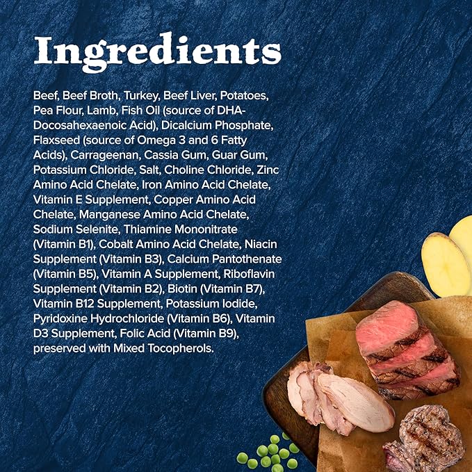 • WHOLESOME INGREDIENTS: BLUE wet dog food contains NO chicken (or poultry) by-product meals, NO corn, wheat (a common thickening agent used by many other brands) or soy, and NO artificial flavors or preservatives
