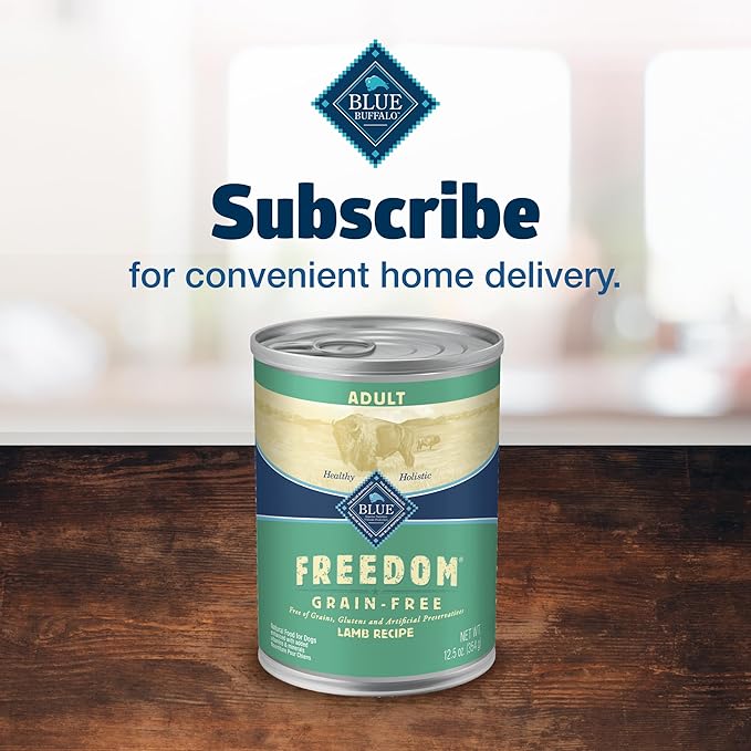 • Contains: Twelve (12) 12.5-oz. cans of BLUE Freedom Grain-Free Wet Dog Food, Lamb Recipe