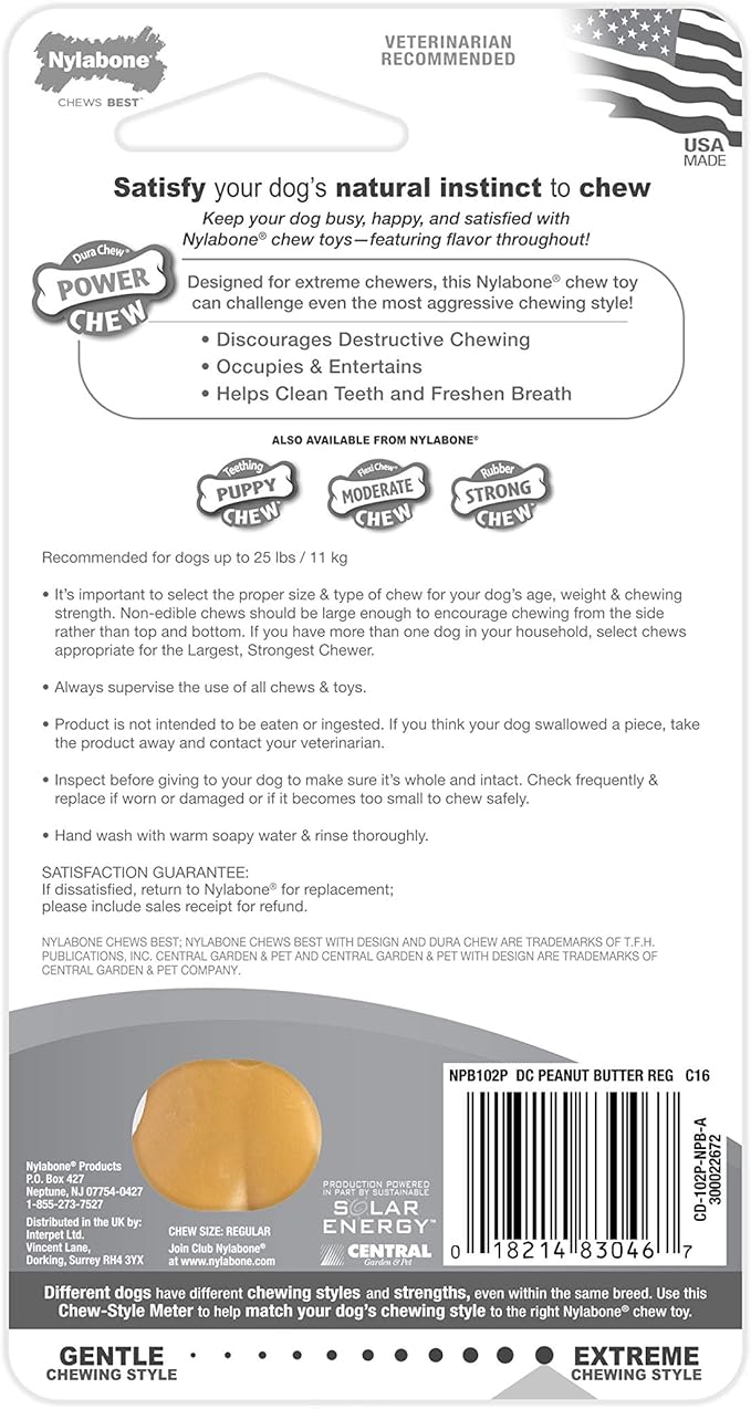 Nylabone Power Chew Classic Bone Chew Toy for Dogs, Durable Dog Toys for Aggressive Chewers, Peanut Butter Flavor, Small/Regular - Up to 25 Ibs. (1 Count)