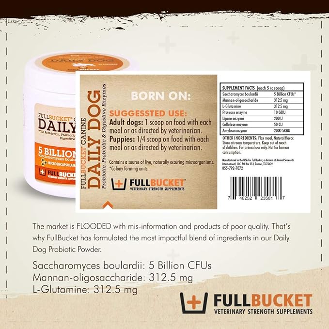 Daily Dog Probiotic 30 Servings - Support Natural Digestion, Treat & Prevent Diarrhea - Probiotics, Prebiotics & Digestive Enzymes All in One Tasty Probiotic Powder for Dogs
