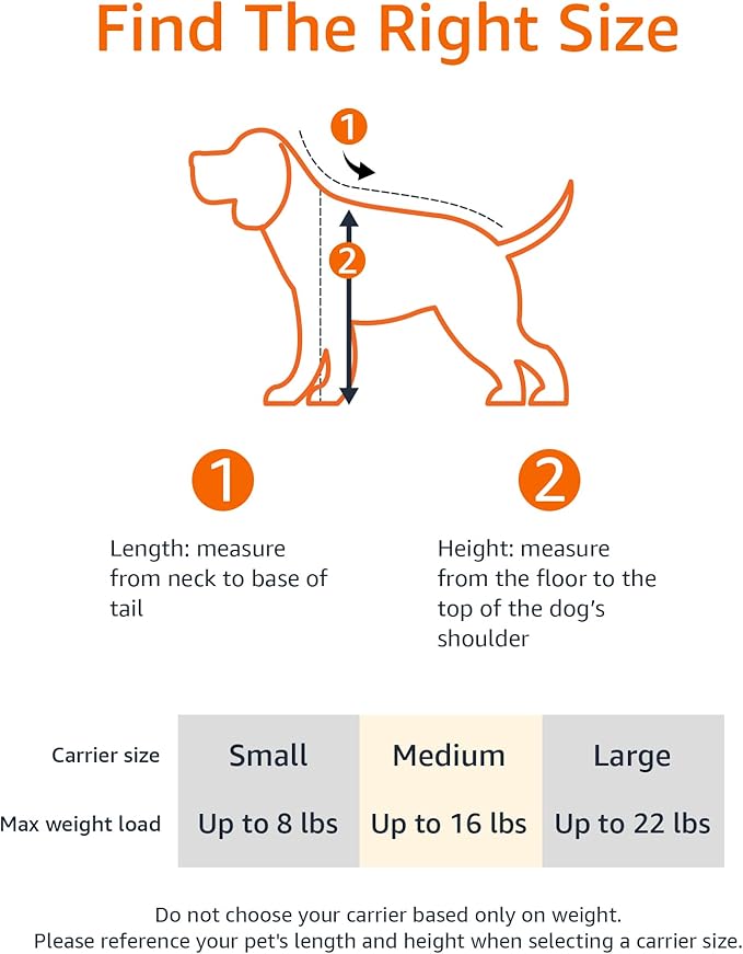 • Before purchasing, please measure pet's length (neck to base of tail) and height (floor to top of shoulder)