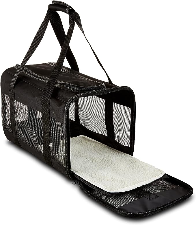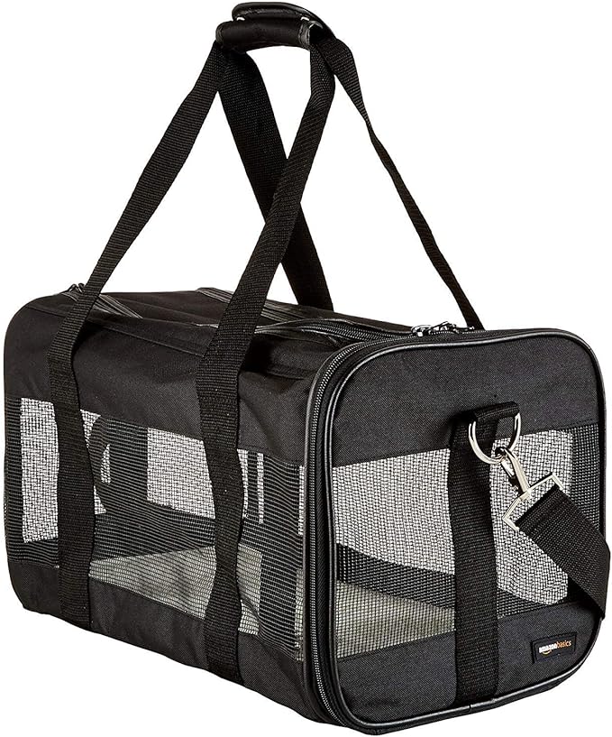 Amazon Basics Soft-Sided Mesh Pet Travel Carrier for Dog, Cat, Medium, 16.5"L x 9.4"W x 9.8"H, Black
