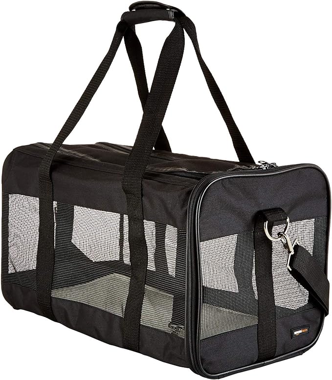 Amazon Basics Soft-Sided Mesh Pet Travel Carrier for Cat, Dog, Large, Black, 19.7 x 10.2 x 11.2 inches (LxWxH)