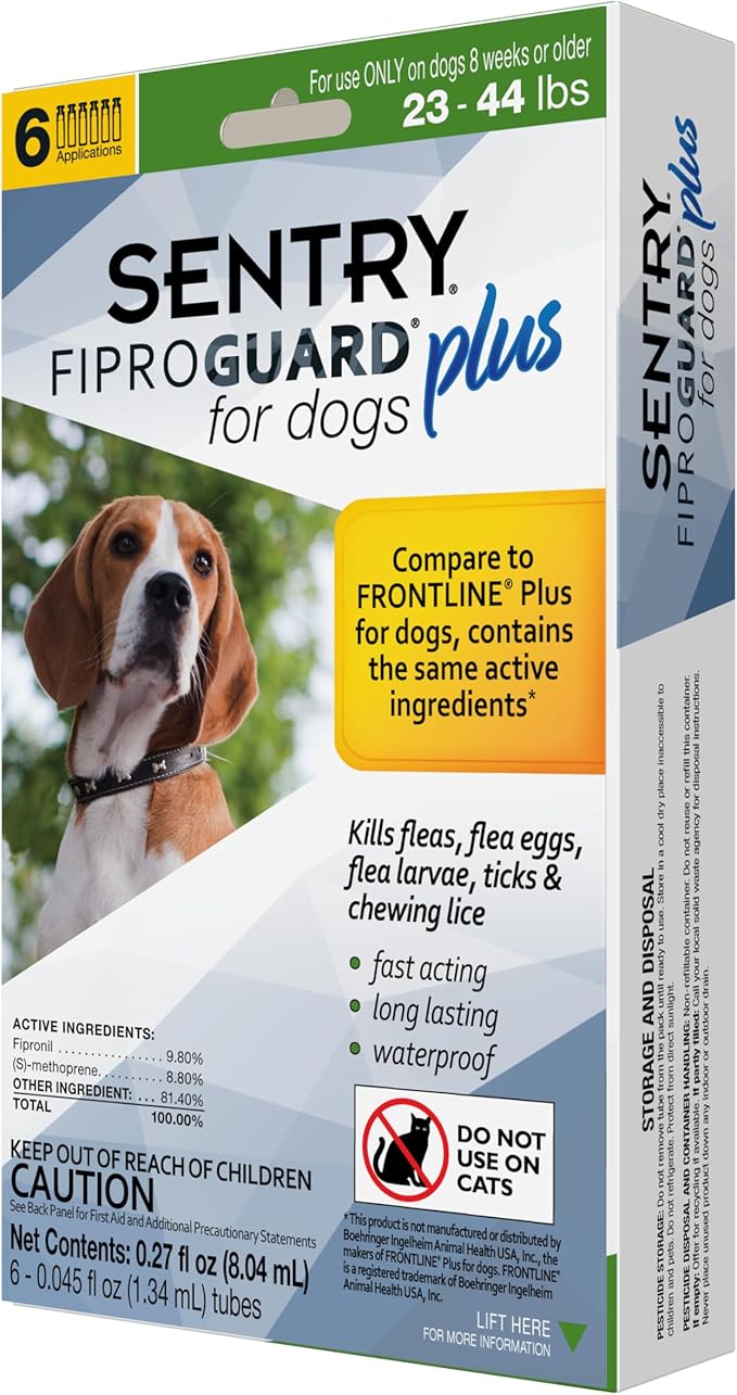 SENTRY PET CARE SENTRY Fiproguard Plus for Dogs, Flea and Tick Prevention for Dogs (23-44 Pounds), Includes 6 Month Supply of Topical Flea Treatments