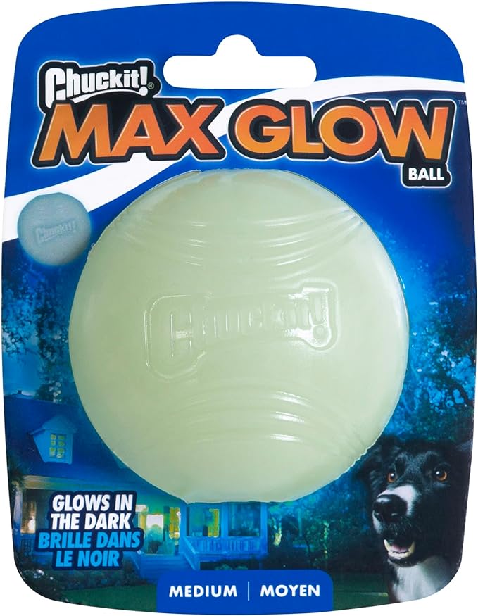 Chuckit Max Glow Ball Dog Toy, Medium (2.5 Inch Diameter) for dogs 20-60 lbs, Pack of 1