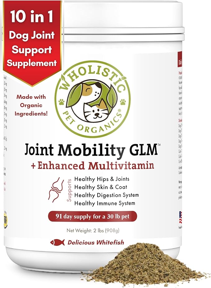 Wholistic Pet Organics Joint Mobility GLM: Dog Joint Health Supplement Glucosamine Chondroitin for Dogs Arthritis Pain Relief Hip and Joint Support Green Lipped Mussels for Dogs Large Breed