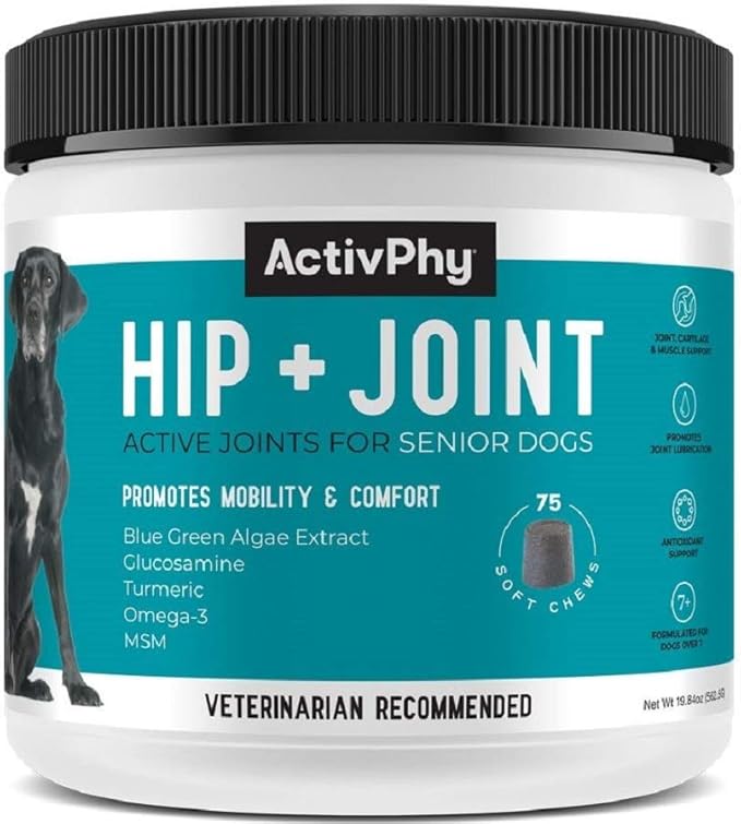 • FOR DOGS JOINT HEALTH: ActivPhy patented joint support helps ease the effects of growing older, so your dog can keep playing, adventuring and living life to the fullest. Perfect for both senior dogs and active dogs of all ages.