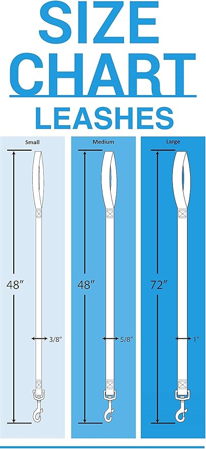 • · ⚠️ BEFORE YOU PLACE YOUR ORDER: Note that we have 3 sizes of Leashes & they each have different measurements in Width & Length, size Small is Thin: 0.5 inch & 4 feet long, good for a small puppy or cat in order to not make it to heavy on them, the Large is Wide: 1 inch & 6 feet long, great for Larger & more aggressive dogs!