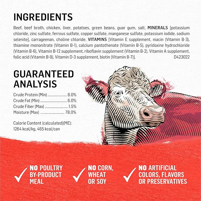 • High protein wet dog food made with Texas beef as the number 1 ingredient (Texas-raised for a minimum of 100 days)